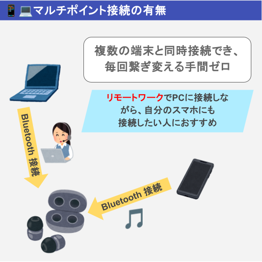 | 6 | マルチポイント接続 | △ | △ | ✔︎ | ✔︎ | |